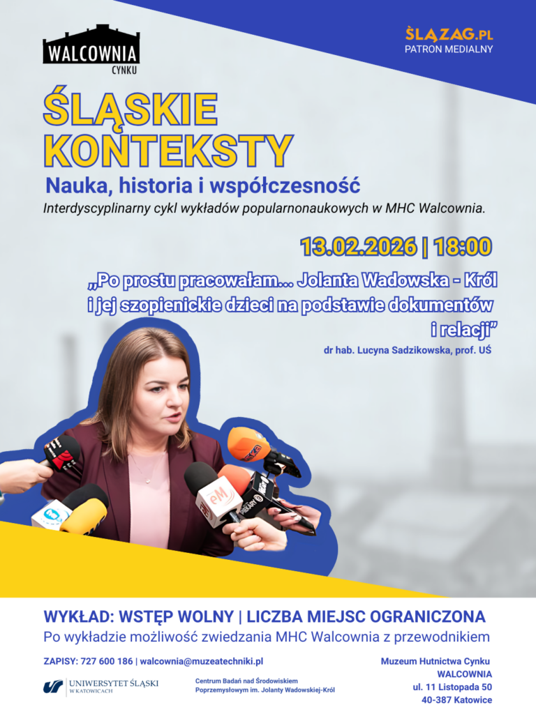 13.02.2026 | 18:00 ,,Po prostu pracowałam… Jolanta Wadowska-Król i jej szopienickie dzieci na podstawie dokumentów i relacji” – dr hab. Lucyna Sadzikowska, prof. UŚ